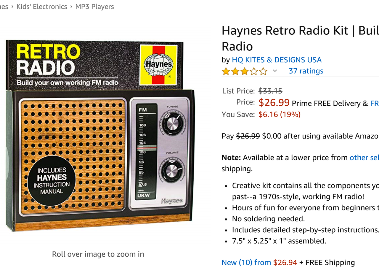 近所の家庭用品販売店へ買い物へ行ったら、HaynesのFMラジオキット